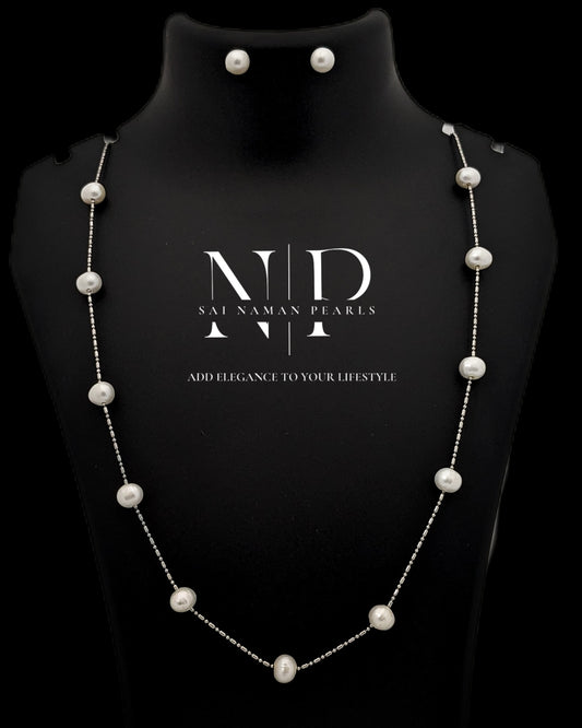 Trendy yet classic, in every glance, Silver pearl chains, a timeless romance....