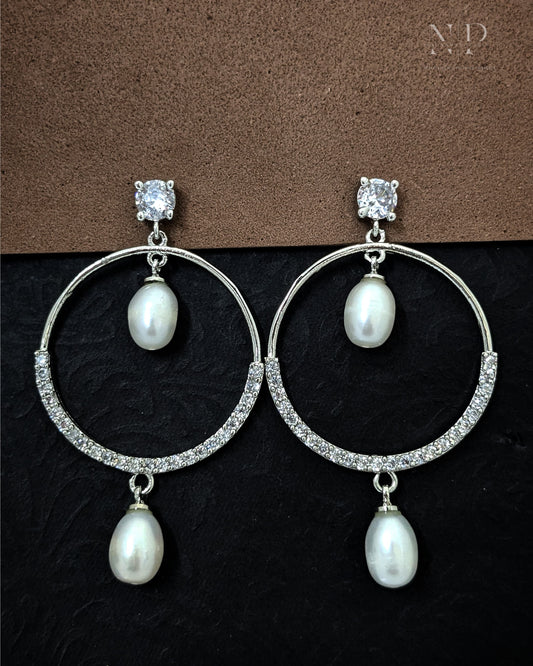 ROYAL REAL PEARLS EARRINGS WITH CZ WORK.
