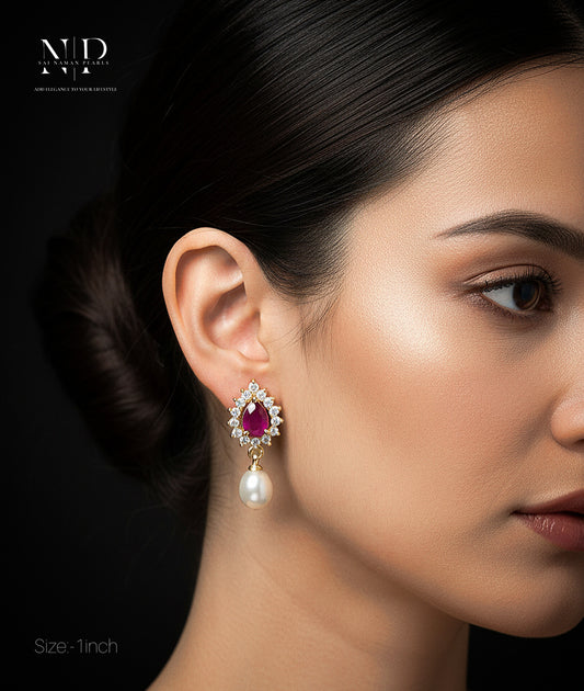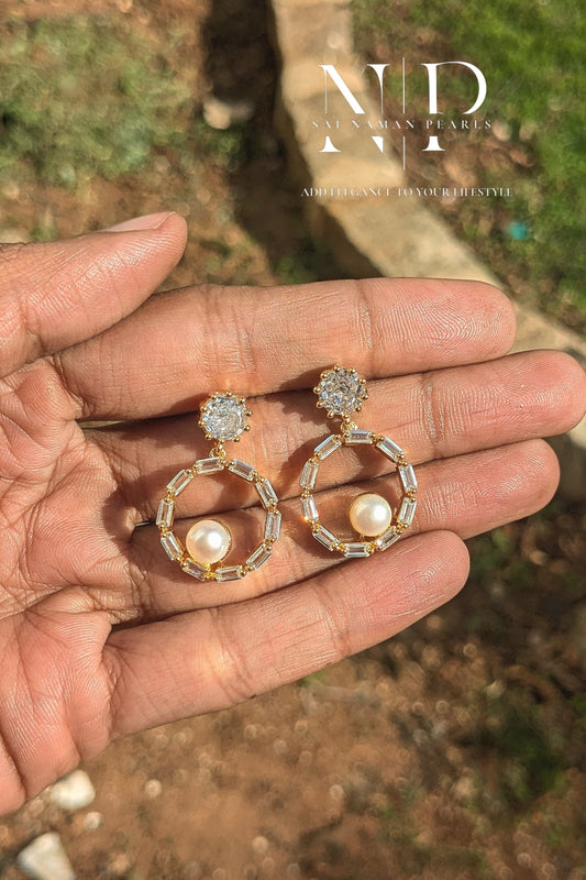 CLASSIC REAL PEARLS EARRINGS WITH CZ WORK.