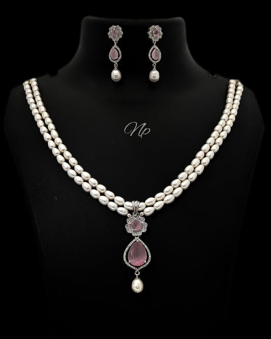 BRAZIL BLUE PEARLS 925 SILVER PIPE SET.
