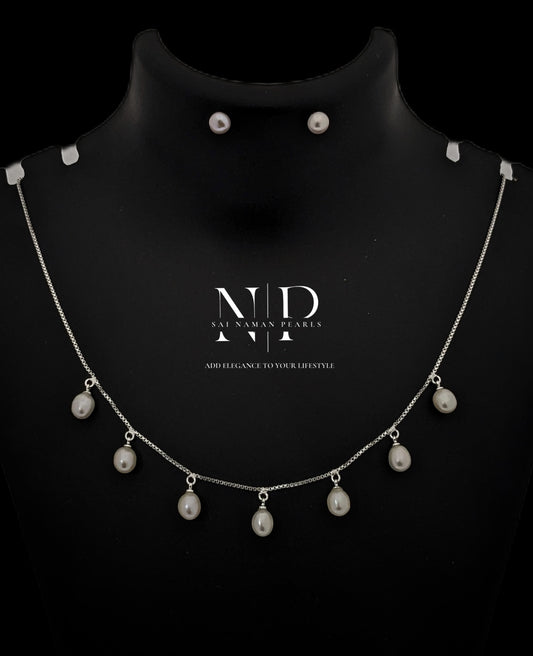 CLASSIC S.SILVER DROP PEARL CHAIN
