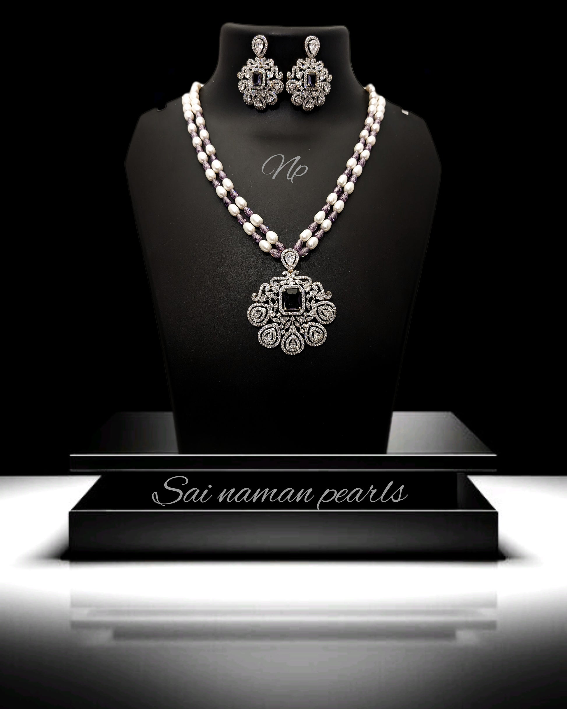 Experience elegance with our AD Pearl Set. Our expertly crafted silver base is adorned with sparkling AD stones, complemented by the classic beauty of pearls. Elevate any outfit with this sophisticated combination.