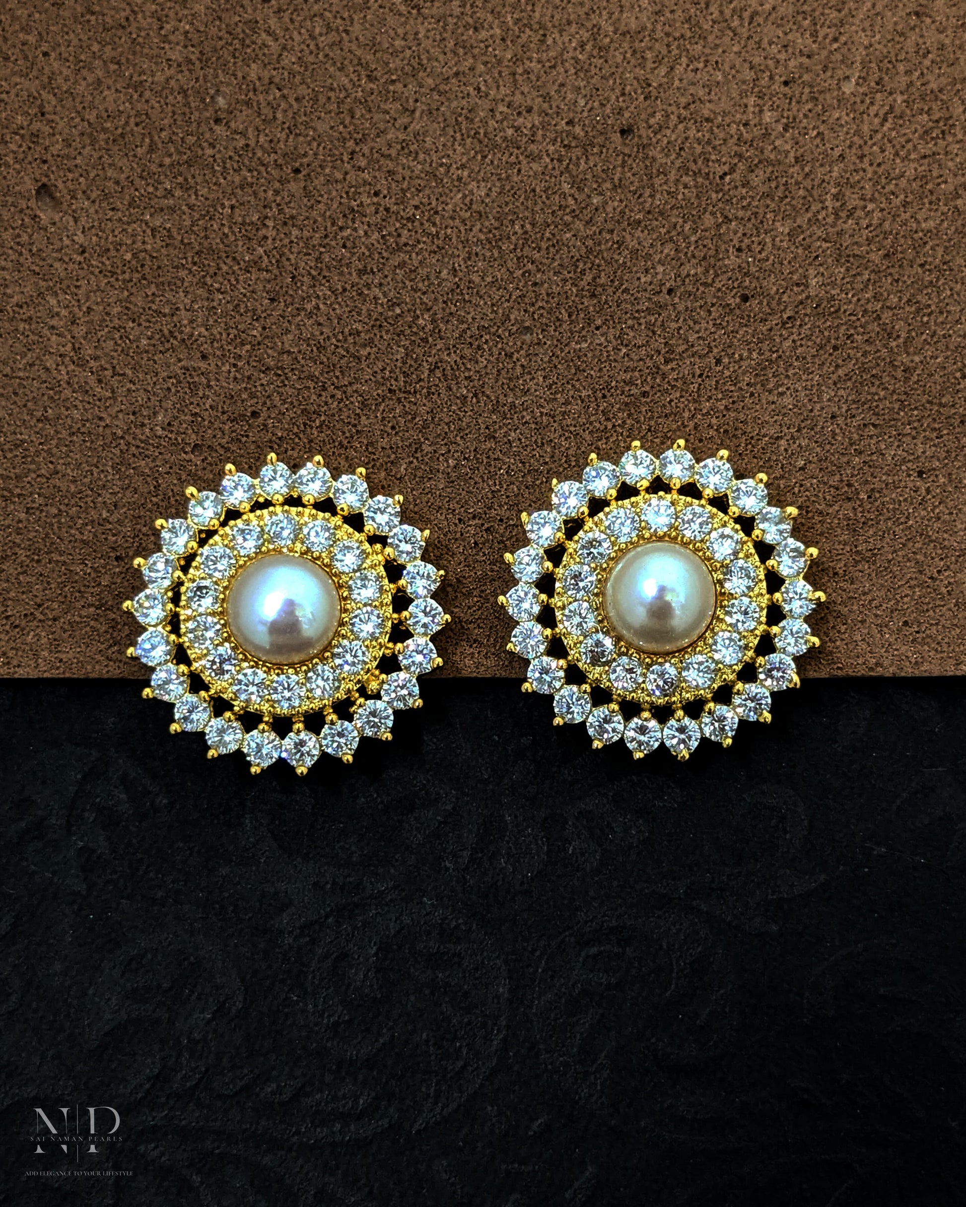 MAHA RANI PEARL STUDS (92.5 SILVER GOLD PLATED).